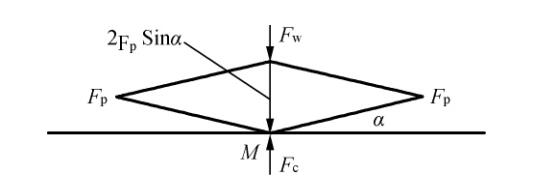 根據(jù)受力分析可得到如下結論:FC = FW - 2FP·sinα ( 1)