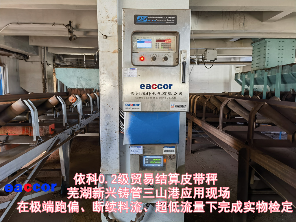 徐州依科高精度智控矩陣皮帶秤在蕪湖新興鑄管項(xiàng)目現(xiàn)場的極端跑偏、斷續(xù)料流、超低流量工況條件下完成3次實(shí)物檢定,每次累計(jì)重量精度均達(dá)到0.2級(jí)皮帶秤檢定標(biāo)準(zhǔn),滿足商貿(mào)結(jié)算高精度要求,贏得客戶稱贊。