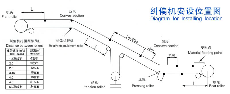 用戶提供皮帶機簡圖(包含總長度,上升段長度,張緊裝置型式和位置,落料的位置數(shù)量等數(shù)據(jù)),我公司會;迅速為您確定安裝糾偏裝置的數(shù)量、位置,以方便您編制計劃。