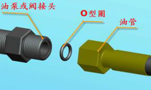 ?。?)所有的接頭均使用O型密封圈。O型密封圈簡單可靠,但安裝時一定要確保O型密封圈在槽內(nèi)。在垂直面上安裝O型密封圈容易掉落,使用凡士林油膏或黃油,能夠使安裝工作更容易,安裝方法如下圖。