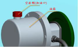 8.加油: 所有部件安裝完畢后就開始給系統(tǒng)加油,加油時擰下空濾帽,空濾帽位置如圖所示,通過油位計觀察其油位,加油至油箱的4/5處即可;