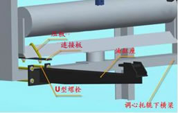 ② 把油缸座安放在調(diào)心托輥下橫梁上,先不擰緊螺母,待油缸安裝上調(diào)整到合適位置時再擰緊螺母。也不要旋緊螺母。